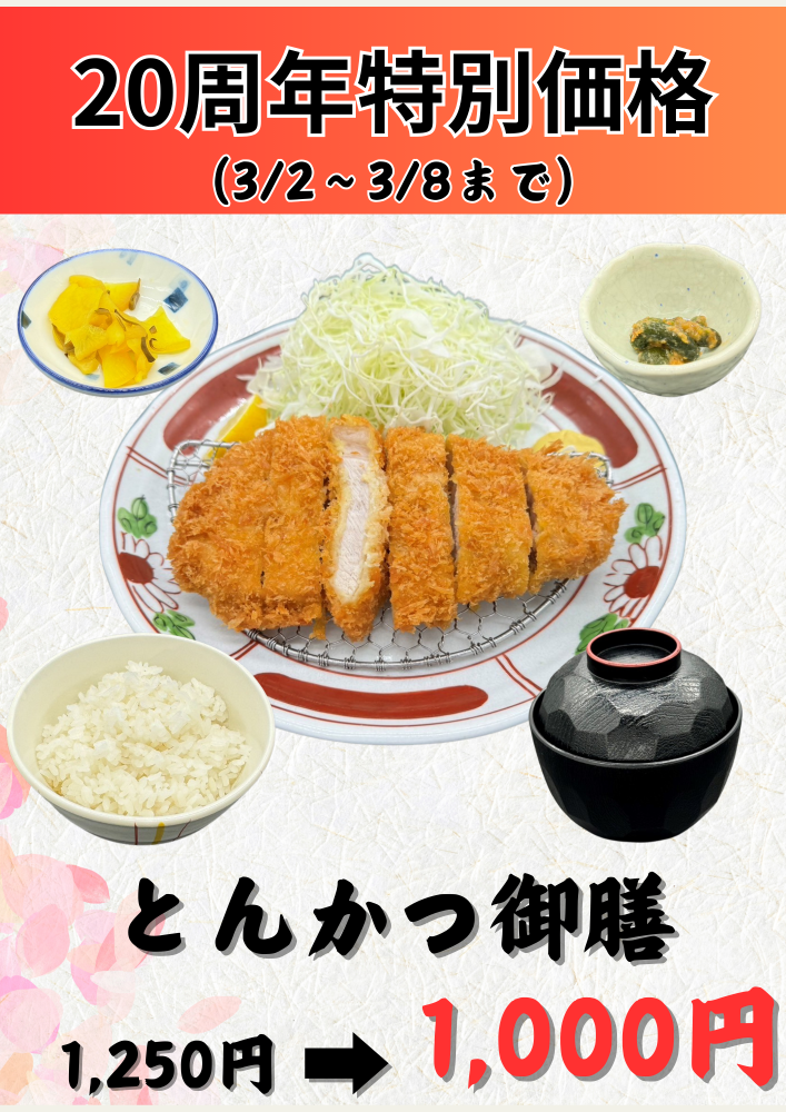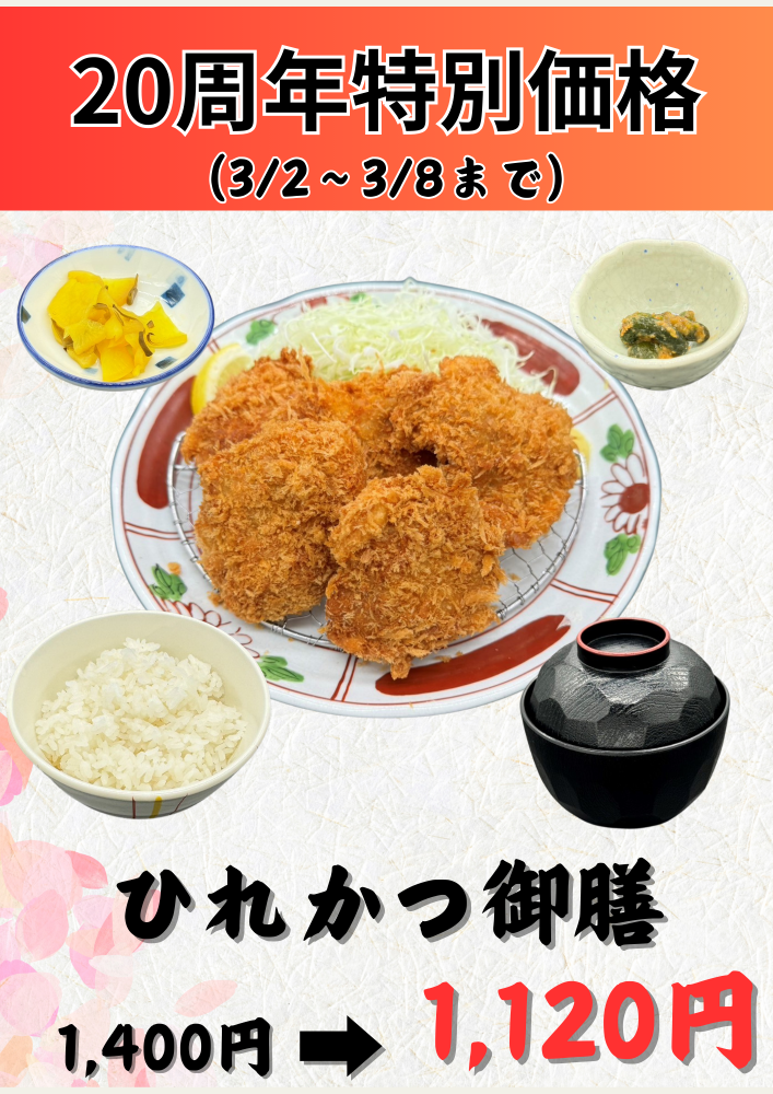 とんかつ御膳とひれかつ御膳を期間限定で特別価格で販売いたします。